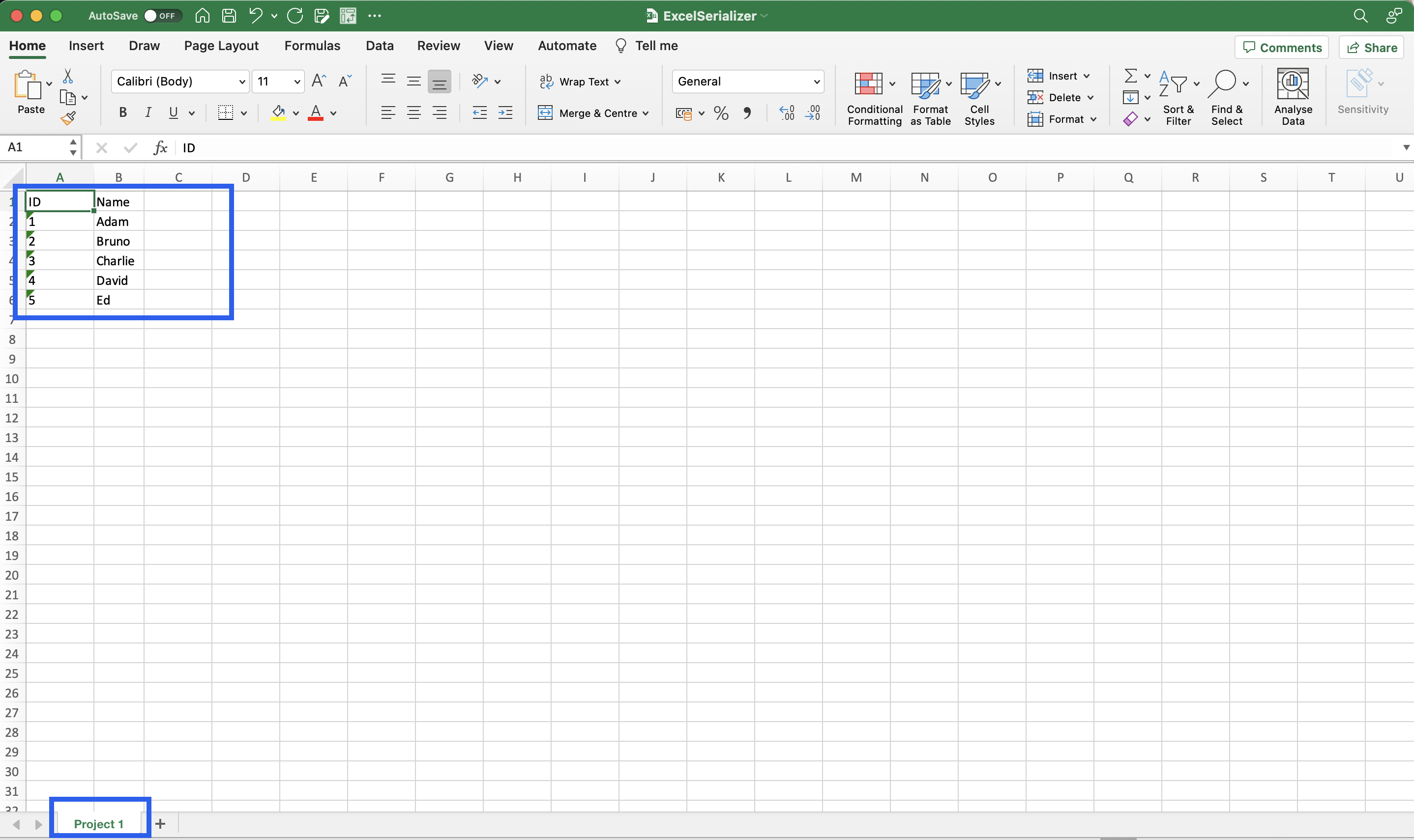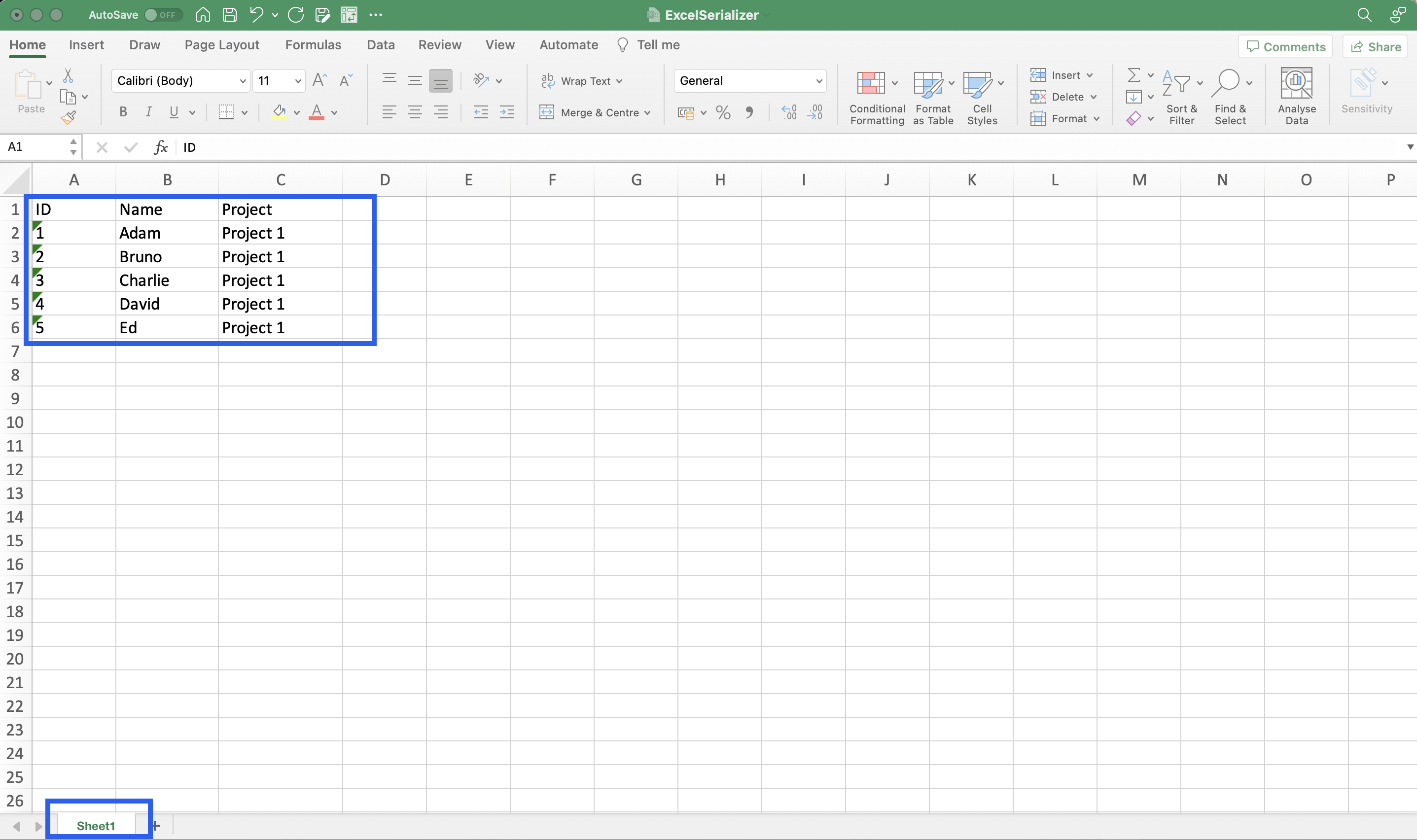 Excel serializer output (ver. 1.0.0)