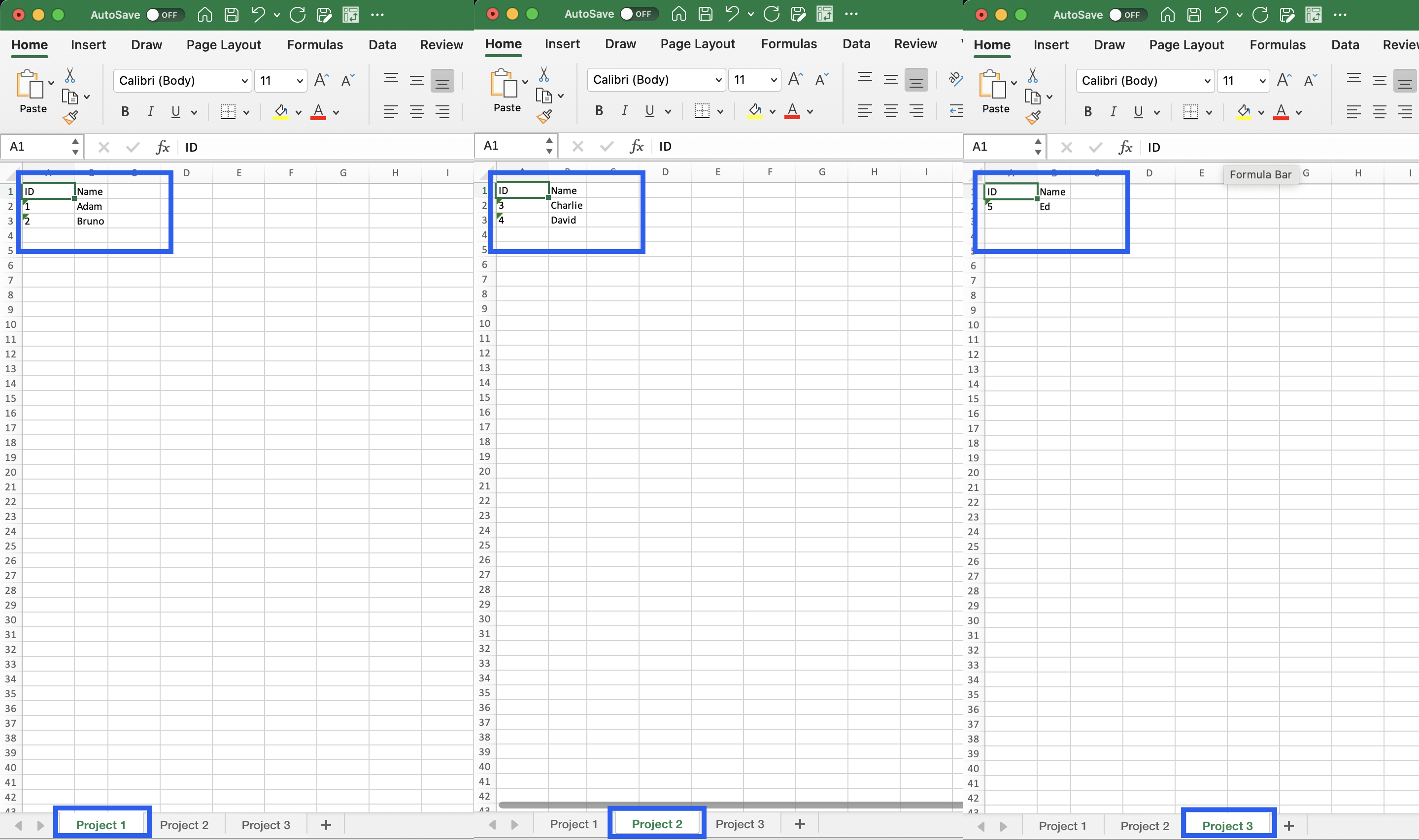 { ID: "3", Name: "Charlie", Project: "Project 2" },